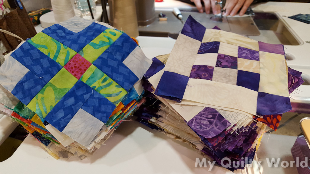 With nine-patches at the ready, the first step is to attach sides to them. I can do this.