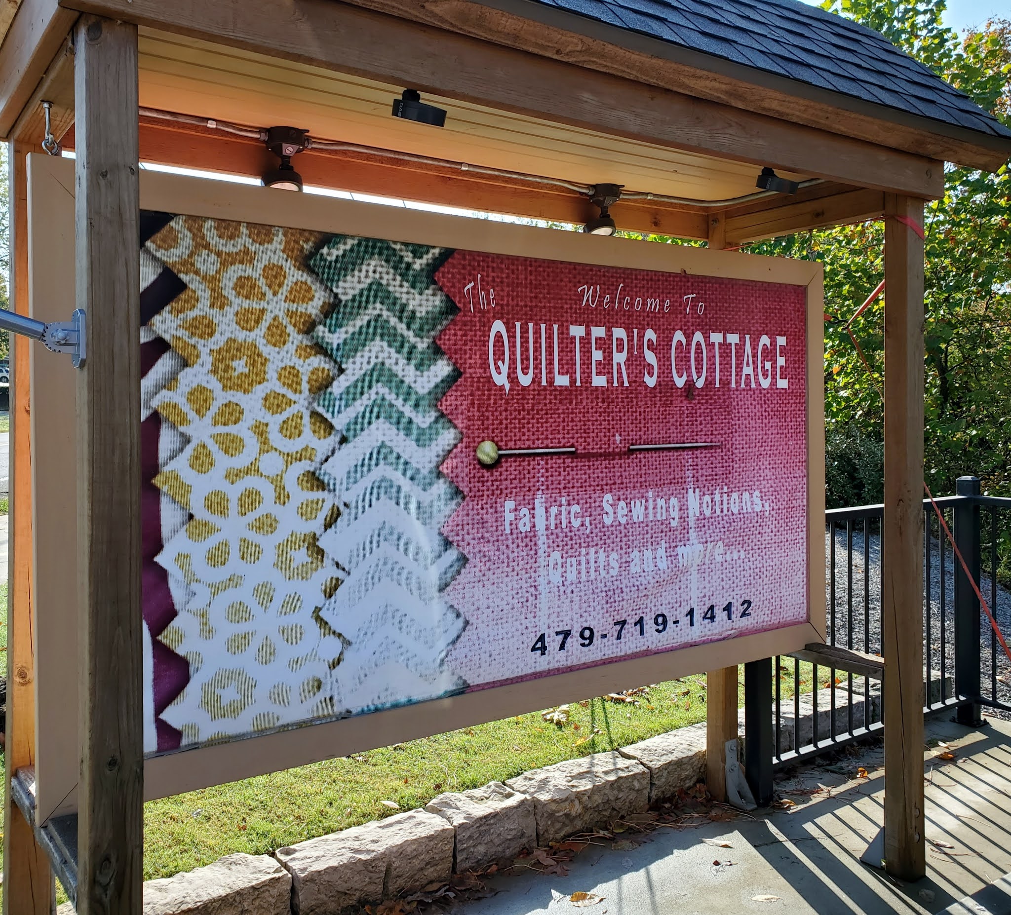 We've been in Eureka Springs the last couple of days and are leaving this morning, but not without a stop at The Quilter's Cottage. Come along for a fun stop and so much more. As we walk in the door, our arrival is announced by the cutest Pomeranian that I have seen in years. She is darling and her job is to let the owner, Shirley, know someone is in the store. She then comes over to say howdy to us with a quick sniff of the feet.