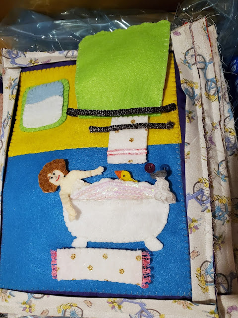 9/7 - September and more pages still needed. I'm so glad I cut so many last month as I was able to grab and go for out trip to Montana. While visiting with Mom, I am able to sit and hand stitch. Two more ready today. Notice how the counting fingers work. Super cute. Also the stethoscope has several layers of pipe cleaners inside to allow for it to actually be worn.