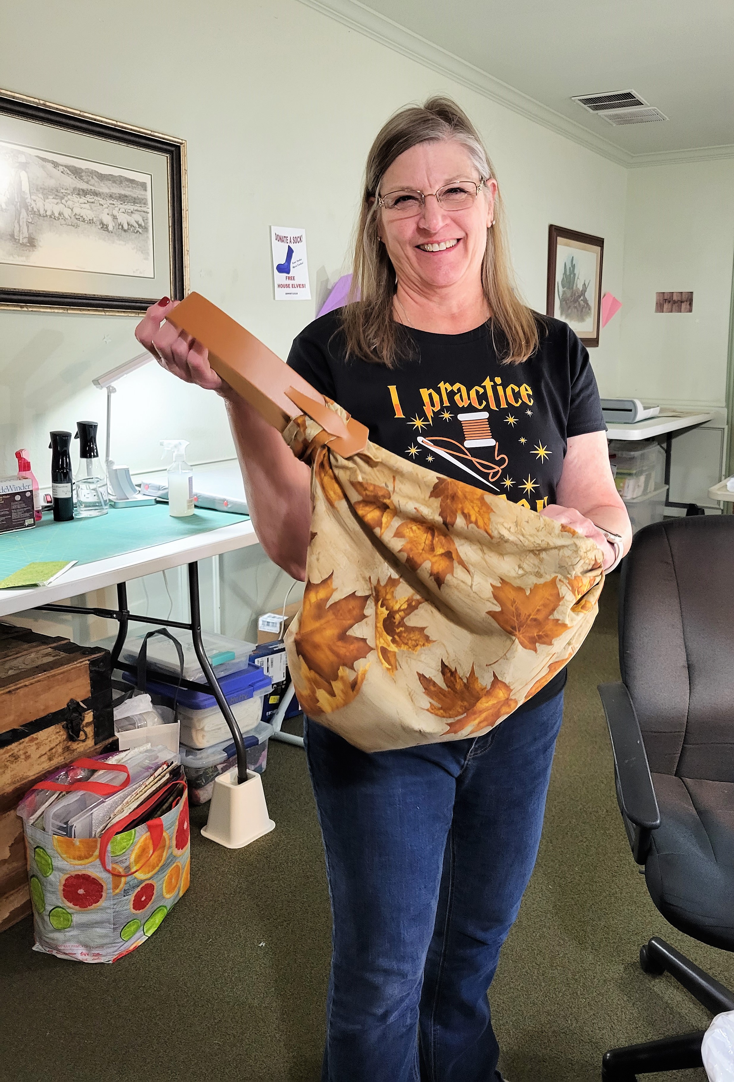 Lunch and sewing happen during this time. Professor Squirrel (Frieda) has her Miyako bag TA-DONE